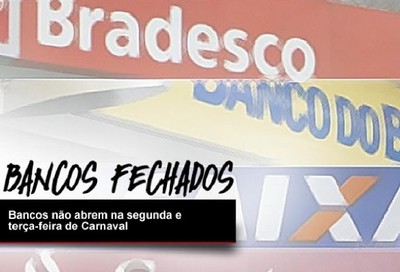 As agências bancárias não vão funcionar na segunda e terça-feira de Carnaval (15 e 16/02). O atendimento ao público dos bancos volta ao normal a partir das 12h da Quarta-feira de Cinzas (17/02).