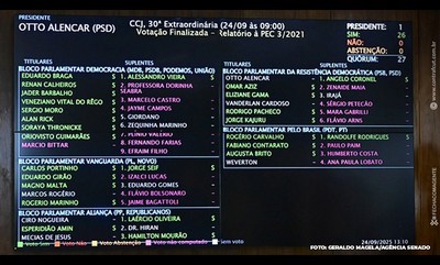 A Comissão de Constituição e Justiça (CCJ) do Senado rejeitou, nesta quarta-feira (24), a Proposta de Emenda à Constituição 3/2021 (PEC 3/2021), que está sendo chamada de PEC da Bandidagem, ou PEC da Blindagem, por exigir autorização prévia da Câmara dos Deputados ou do Senado para abertura de ação penal contra parlamentares. Os senadores aprovaram por unanimidade o parecer do senador Alessandro Vieira (MDB-SE) contrário à matéria. A decisão final caberá ao Plenário do Senado.