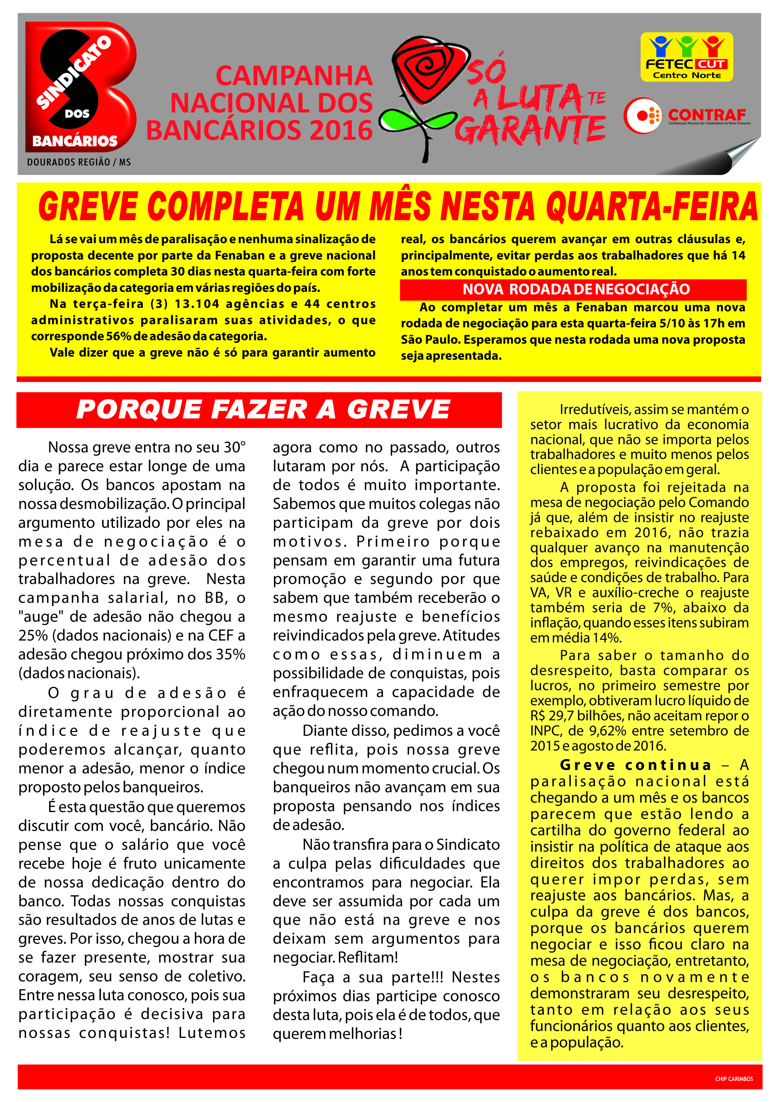 A greve dos bancários completa nesta quarta-feira 5/10 30 dias, a greve iguala a marca da campanha de 2004, primeiro ano da mesa de negociações unificadas entre bancos públicos e privados e recorde nesse novo modelo. A greve mais longa da categoria na história foi em 1951, com 69 dias de paralisação.