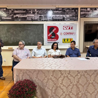 Em cerimônia realizada na manhã desta sexta-feira, 31 de outubro, na sede da Entidade, a diretoria do Sindicato dos Bancários e Trabalhadores do Ramo Financeiro de Dourados e Região MS, que acabou de completar 46 anos de existência no dia 20 de outubro, prestou homenagem ao Jornal Bancário pelo seu 40º aniversário de fundação.