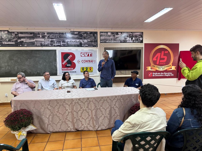 Em cerimônia realizada na manhã desta sexta-feira, 31 de outubro, na sede da Entidade, a diretoria do Sindicato dos Bancários e Trabalhadores do Ramo Financeiro de Dourados e Região MS, que acabou de completar 46 anos de existência no dia 20 de outubro, prestou homenagem ao Jornal Bancário pelo seu 40º aniversário de fundação.