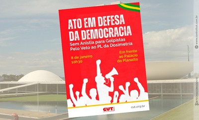 Nesta quinta-feira, 8 de janeiro, data em que se completará três anos da tentativa de golpe de Estado, a CUT e demais movimentos sociais realizarão, em todo o país, atos sob o lema "Em defesa da democracia, sem anistia para golpistas, pelo veto ao PL da dosimetria!". A principal manifestação está marcada para acontecer em Brasília, onde os ataques ocorreram, mas outras atividades serão realizadas nas demais capitais do país.