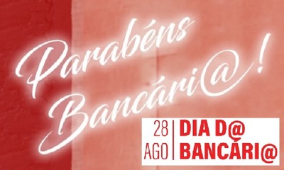 Neste sábado, 28 de agosto, é comemorado o Dia do Bancário. O Sindicato sabe que a rotina nas agências não é fácil. Mas, a categoria tem a luta no DNA e, apesar da pandemia, dos ataques do governo Bolsonaro e dos bancos, tem conseguido assegurar conquistas. É uma das poucas a manter direitos e conquistar aumento real. Sem dúvida, merece parabéns.