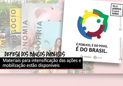 A Contraf-CUT (Confederação Nacional dos Trabalhadores do Ramo Financeiro) lançou, na semana passada, mais uma campanha em defesa dos bancos públicos. A primeira parte dos materiais já estão sendo utilizados nas redes sociais dos sindicatos. Ação visa intensificar atuação de sindicatos de bancários de todo o país em defesa dos bancos públicos e de seus funcionários, que também podem aderir à campanha compartilhando os matériais em suas redes socais.