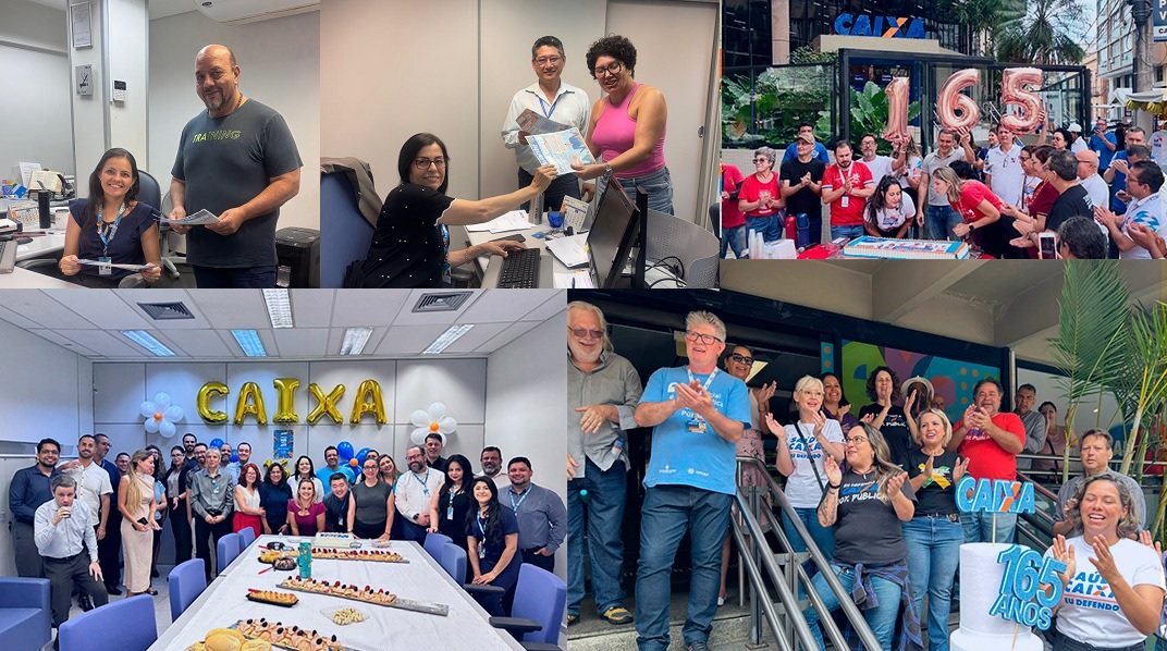 Empregados e empregadas da Caixa Econômica Federal realizaram, em diversas cidades do país, manifestações em comemoração aos 165 anos do banco público, reafirmando o orgulho pela história da instituição e pela sua função social estratégica. Os atos também denunciaram os impactos do fechamento de agências, da redução do quadro de pessoal e das condições de trabalho impostas aos trabalhadores, além de cobrar o fortalecimento da Caixa como banco público a serviço da população.