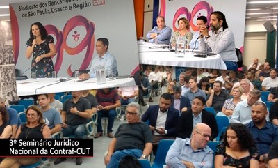 No primeiro dia do Seminário, as propostas das centrais sindicais para a contrarreforma trabalhista brasileira foram apresentadas pelo assessor jurídico da CUT, José Eymard, e pelo sociólogo e ex-diretor técnico do Dieese, Clemente Ganz Lúcio. A organização sindical do ramo financeiro foi o outro tema, apresentado pela secretária de Organização do Ramo Financeiro e Política Sindical da Contraf-CUT, Magaly Fagundes.