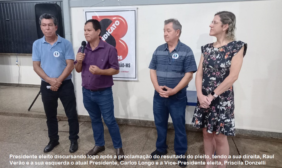 Ao final da apuração, o presidente eleito, Janes Estigarribia, agradeceu a participação dos presidentes e mesários de cada urna, responsáveis pela coleta dos votos. Agradeceu também pelo voto, a cada bancária e bancário, da ativa e dos aposentados, assim como o apoio recebido das entidades representativas da categoria, dos movimentos sociais e da classe trabalhadora.
