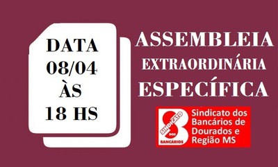 EDITAL: Em segunda chamada para Assembleia Extraordinária Específica no dia 08 de abril